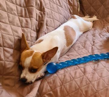 Regalo cucciolo femmina di 10 mesi razza chihuahua/pincher colore bianco e marrone. Molto dolce con bambini e altri cani, giocherellona. Peso 3 kg e non potrà aumentare. Abituata a fare i bisogni fuori e sulla traversina. Regalo microcippata, con tutti i vaccini, libretto di salute e certificato di proprietà. Sono nell'impossibilità di tenerla per improvvisi problemi personali, il cane è come da dicembre 2020, farà un anno il 20 settembre.