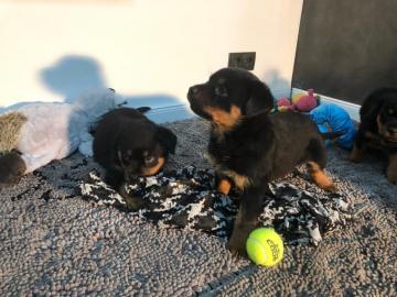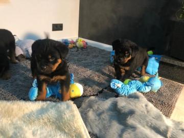 Si possono prenotare top cuccioli di Rottweiler di alta genealogia. Figli di Apache dei Gladiatori del Sud x Anita Von Der Alten Dingo, entrambi esenti da displasia anche e gomiti. Ottime linee di sangue, cuccioli adatti sia per famiglia che per esposizioni. L'intera linea presenta Campioni nazionali ed internazionali. I cuccioli hanno all'incirca 30 giorni e verranno consegnati dopo i due mesi di vita ovvero a Gennaio con ciclo vaccinale completo, sverminazioni, pedigree, libretto sanitario e garanzia di buona salute, passaggio, microchip. Il nostro allevamento assicura massima serietà e competenza oltre che disponibilità per tutti i proprietari dopo la consegna dei cuccioli. Possibilità di consegna in tutta Italia. Attenersi perditempo e curiosi!!!