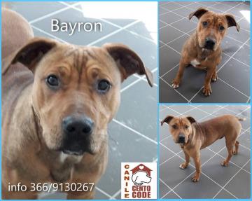 BAYRON : SIMPATICISSIMO CUCCIOLO DI CIRCA 6 MESI ..! ..con tanta voglia di giocare , di ricevere coccole e attenzioni .. bellissimo , con un musetto molto espressivo ed un fisico molto muscoloso e agile , con un mantello di pelo color nocciola e la punta del musetto nera … di carattere socievole, senza essere troppo esuberante , accoglie tutti con grandi feste , desideroso di compagnia .. compatibile con le femmine , non sappiamo con altri maschi .sarà una futura taglia media e si trova al canile Cento Code di Sant’Antonino (TO) ..per informazioni 366/9130267 (orario 9/12 15/18 no festivi ).