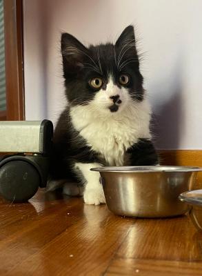 ECCO OLGA Olga e' una piccolletta tutta dolcezza e simpatia. Dopo non poche fatiche siamo riuscite a tirarla fuori dal motore di una macchina parcheggiata, durante un gigantesco temporale. Ad una prima occhiata sembrava avesse fatto il meccanico da una vita tanto da aver nascosto molto bene le sue macchiette bianche da mucchina. Ora le abbiamo fatto il tagliando ed e' stata pulita, sverminata, vaccinata e microchippata. Verra' data in adozione a Torino o provincia, previo controllo preaffido e firma modulo di adozione. Per info 3409093431