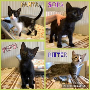 Fanta, Soda, Pepsi - femminucce Bitter - maschio Un mazzo di fusa, questo si trova davanti con questi 4 micini. Sono un gruppo vivace ma estremamente dolce, tutti e quattro hanno un ottimo carattere e gli piace essere coccolati. Sono sverminati e trattati con antiparassitario. Si affidano a Torino e provincia previo preaffido Per info 3409093431