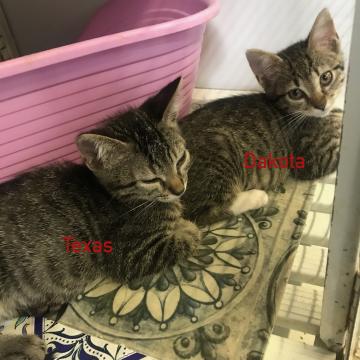 Texas il maschietto e Dakota la femmina sono due fratellini con un bellissimo carattere: dolci, affettuosi..... cerchiamo per loro una famiglia per la vita Hanno due mesi, sono sverminati e vaccinati Adozioni anche singole Adottabili su Torino e provincia previo preffido Per info 3409093431