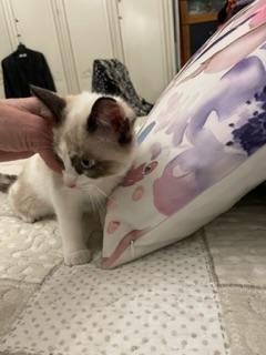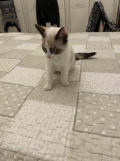 Regalo gattina di due mesi perché non posso tenerla in quanto sopraggiunti impegni all’estero. È molto particolare con quelle macchiette sugli occhietti, è affettuosa e tranquilla.