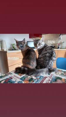 Regaliamo 4 cuccioli, anche separatamente, nati il 11/07/2023 tutti con gli occhi azzurri come la madre, la mamma (pelo corto) e il papà (pelo lungo) sono entrambi vaccinati. Saranno disponibili dai primi giorni di settembre in attesa del termine dello svezzamento. Il rosso e uno dei tre cuccioli neri/grigi sono due maschi, le altre due grigie femmine. Sono gatti da appartamento, già in grado di utilizzare la lettiera. In caso siate interessati preferiremmo essere contattati per telefono. Inutile dire che sono bellissimi.
