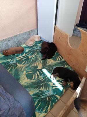 Siamo nati l'11 agosto da una cagnolina meticcia presa in affido 2 anni fa perché orfana. La nostra mamma, a detta dei veterinari era troppo vecchia per procreare e quindi non necessitava di sterilizzazione. A distanza di due anni dall'adozione, si é talmente trovata a suo agio che ha fatto un miracolo e ci ha dato la vita. Tra 2 mesi saremo pronti per trovare un umano, uomo o donna che sia, che ci voglia bene e si prenda cura di noi.