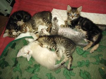 Regalo gattini vivaci, belli, giocherelloni. Bianco, un altro grigio gli altri tipo soriano. Telef 3456865366
