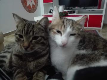 Regalo questi due mici e tutti i loro accessori: lettiera, mangime, trasportino, sabbia. Sono sterilizzati e vaccinati. Si fornisce libretto. Aiutatemi a trovare loro una casa migliore di questa. Grazie mille.