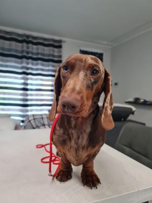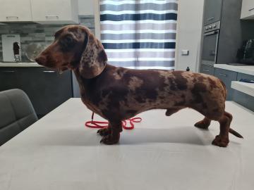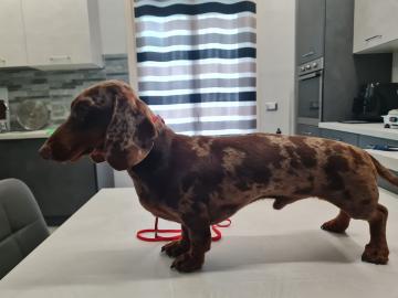 Bellissimo esemplare di bassotto nano arlecchino choco disponibile per monte. Razza pura e ottimo carattere.