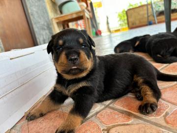 Cuccioli di’ Rotweiler padre e madre visibili, 4 maschi e 3 femmine
