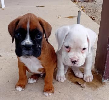 Disponibili splendidi cuccioli di boxer con pedigree Enci di alta genealogia linea da esposizione. 2 bianchi maschioe femmina( no albini) e 1 fulvo maschio. Nonni pluricampioni Italiani di bellezza , si cedono con iscrizione anagrafica canina, 2 vaccino, libretto sanitario e microcippati, sverminati periodicamente. Disponibili a raggiungere tutta Italia. Contatti x altre foto/video WhatsApp 338 1962029