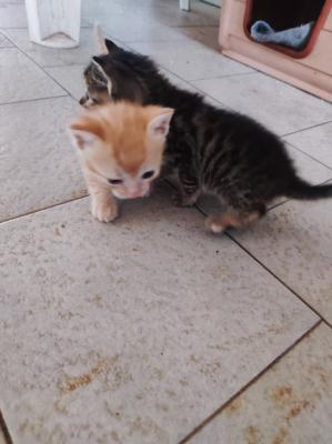 Sono tre micetti, un maschietto tigrato e due femminucce, una tigrata e una rossa. I gattini sono in buona salute e hanno iniziato lo svezzamento.