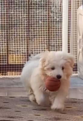 Vendo cucciolo maltipoo, maschio, pelo bianco con sfumature nocciola, sverminato e vaccinato. Quasi 3 mesi.