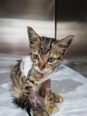 Agostino è un gattino di circa 2 mesetti, tigrato, che cerca una famiglia che possa amarlo e farlo ricredere del genere umano dopo tutto ciò che gli è successo..Lo abbiamo trovato buttato per strada in condizioni critiche con la scapola di fuori, la pelle lacerata e parassiti vari. Dopo 5 giorni che è stato in clinica veterinaria (tutto a spese nostre), oggi è stato dimesso. Gli esami sono tutti perfetti e anche i parassiti sono stati eliminati. Agostino ha reagito molto bene alle terapie ed è abbastanza forte nonostante la sua piccolezza e fragilità. Al momento si trova a casa di una mia amica che si sta prendendo cura di lui e sta continuando le medicazioni fino a totale guarigione, ma purtroppo non potrà tenerlo con sè per svariati motivi. Agostino è un coccolone ed è dolcissimo. Ovviamente prima di affidarlo a qualcuno vogliamo essere certe che il gattino starà bene, all'interno di una casa e di una famiglia che AMA gli animali e che verrà trattato con cura e amore. Per altre info chiamate al numero 327-8238454 opp. 320-6622093