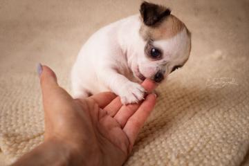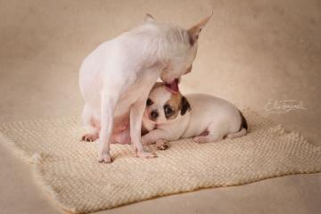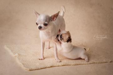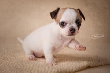 Chihuahua femmina bianca e nocciola