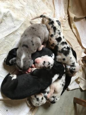 Stupendi cuccioli di Alano N. 1 maschio Merle N.2 Mantel un maschio é una femmina N.4 Neri tutte femmine N. 3 Arlecchino due maschi una femmina Godono tutti di ottima salute. I cuccioli saranno pronti da metá agosto in poi, completi di tutti i vaccini microchip e libretto sanitario. Il prezzo e di 850 Euro a cucciolo. Per ulteriori informazioni al 3665414718