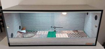 Terrario nuovo completo di neon + lampada calore e pogona di 2 anni femmina, abituata al contatto umano, in più kit per grilli e blatte. Prezzo trattabile.