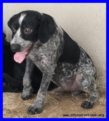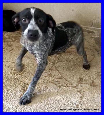 GEORDI è un simpaticissimo cucciolone di circa 1 anno, simil bracchetto a pelo duro di taglia mediopiccola, 39 cm di altezza. Il piccolo è una vera forza della natura. Festoso ed affettuoso, pieno di vita, non ha fatto altro che saltellarci attorno quando siamo andate nel suo box. La sua gioia di vivere è davvero contagiosa e ci piange il cuore sapere che finchè resterà in gabbia tutta la sua allegria sarà sprecata, mentre potrebbe servire per rasserenare le giornate di qualcuno. Quindi, fateci un pensierino...se avete bisogno di qualcuno che vi dia la carica, il nostro dolce Geordi è quello che fa per voi!!