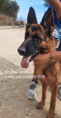 Regina pastore tedesco di 1 anno,sterilizzata e buonissima,molto giocherellona viveva a catena ora è ospitata in un box di un rifugio in Calabria ma soffre moltissimo la reclusione!Cerchiamo per Regina famiglia adeguata che la consideri parte della famiglia quindi no solo giardino,no tenuta a catena,no reclusa in qualche box!!Una famiglia che con pazienza e amore le ridia la serenità! Si affida solo dopo iter adozione completo a persone responsabili,vaccinata e microchippata,raggiuge il centro nord con staffetta autorizzata ASL.Per info Giusy cell 3280097079,grazie