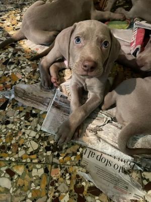 Vendesi cuccioli di Weimaraner, con pedigree, nati il 4 agosto 2023, affidabili dal 15 ottobre 2023. Visionabili con la madre a Lucca. Disponibili un maschio e una femmina.