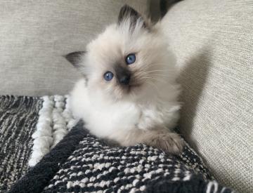 Splendidi cuccioli Ragdoll (seal point e blu point) con grandi occhi blu e pelo morbido e soffice nati il 15 agosto 2022, saranno pronti per essere adottata a partire da fine ottobre. Si accettano prenotazioni. I cuccioli sono stati allevati in casa con amore, sono esenti da qualsiasi patologia e verranno ceduti dopo trattamento ascaridi (sverminazione) e dopo prima vaccinazione trivalente (che comprende i vaccini per la rinotracheite (herpes virus), per la calicivirosi (calici virus) e per la gastroenterite virale (panleucopenia)). I genitori e cuccioli sono esenti da malattie feline quali FIV e FELV (le foto dei genitori sono visibili nell’annuncio). Il Ragdoll ha il pelo molto morbido e setoso, di vari colori e tonalità ed è un gatto tra i più eleganti e intelligenti. Anche il Ragdoll, come il sacro di birmania, è molto casalingo e non ama stare solo, pertanto è particolarmente adatto ai bambini in quanto di carattere estremamente affettuoso, docile ed equilibrato. Foto 1,2– cucciolata precedente (anno 2021) Foto 3 - Madre seal point senza pedigree Foto 4 - Padre blu point con pedigree