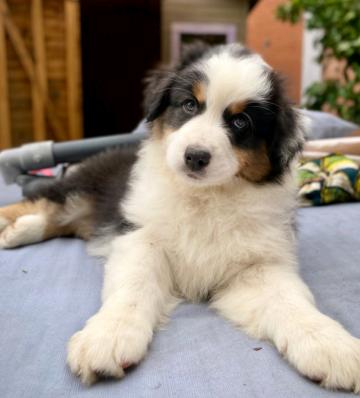 Ultima cucciola disponibile di pastore australiano blacktricolor nata il 12 aprile 2023 disponibile dal 12 giugno.