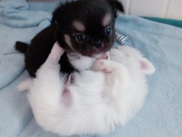 Sono dispinibili due bellissimi cuccioli maschi di Chihuahua pelolungo, da padre Chihuahua asiatico con Pedigree, uno bianco e uno nero, completi di sverminazione, primo vaccino, libretto sanitario e iscrizione anagrafica, età due mesi! Contatto telefonico o whatsapp al numero 3714282110, Andrea.