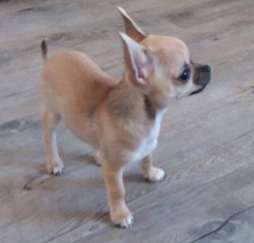 Cedo bellissimo cucciolo maschio di Chihuahua, misura toy, età 3 mesi e mezzo, nato in Trentino da papà Chihuahua pelolungo di esposizione con pedigree e mamma Chihuahua pelocorto color merle, molto affettuoso e coccolone, già autonomo e completo di sverminazione, vaccini, microchip, libretto sanitario e iscrizione anagrafica - a 400 Euro. Contatto telefonico al numero 3511868841, Luigi.