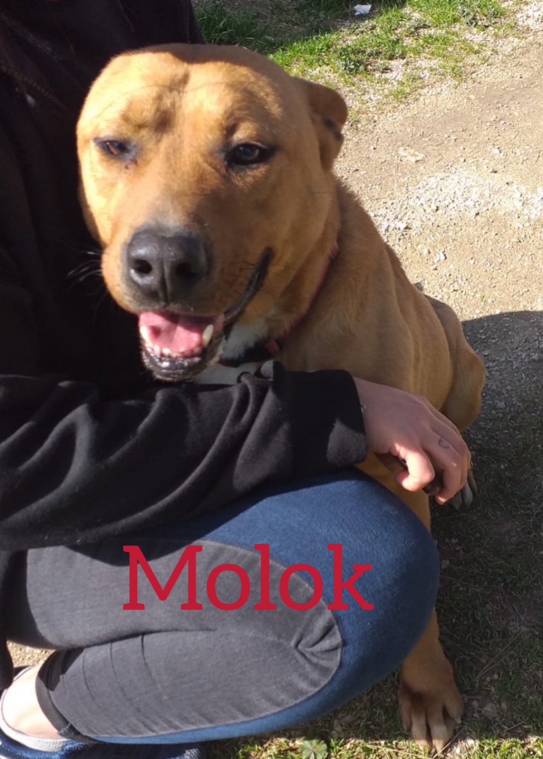 Ciao, mi chiamo MOLOK. Sono chiuso in gabbia e non me ne faccio una ragione. Eppure sono un buon cane, possibile che nessuno voglia adottarmi? Patisco la reclusione del box; quanto durerà questa prigionia? Sono uno stupendo molosso di taglia grande, amante delle persone ma gestito in modo sbagliato dalla mia famiglia di origine. Sono esuberante e giocherellone...è il mio unico modo per farmi notare qui dentro al canile!! Sono molto attaccato all’uomo con cui mi trovo molto bene.​