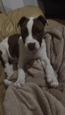 Vendo cucciolo di pitbull di due mesi, a 300€ giusto le spese di mantenimento, il cane possiede già il microchip, ciclo completo di sverminazioni, antiparassitario, e primo vaccino