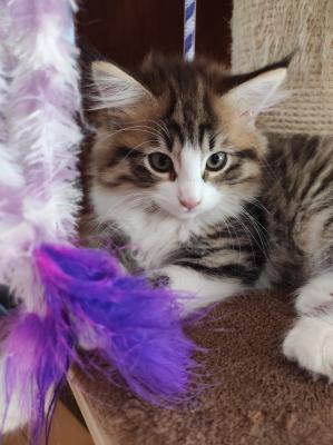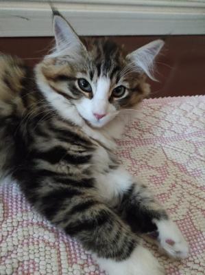 Disponibile da metà luglio gattina norvegese di tre mesi e mezzo colore brown tabby con bianco. Verrà ceduta sverminata e con doppia vaccinazione (Disponibile a tenerla di più per permettere le vacanze estive)