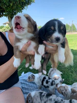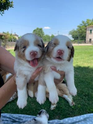 Cuccioli di pastore australiano maschi e femmine Red merle, blu merle. Red tricolor e black tricolor.tutti con coda. I cuccioli sono nati il 5 giugno, si consegnano dopo 60 giorni con primo vaccino ciclo di sverminazione libretto sanitario microchip passaggio di proprietà e visita veterinaria con certificato di buona salute, genitori in ottima salute e visibili. Per maggiore informazione contattatemi via telefonica. Grazie.