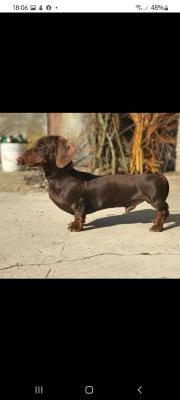 Sono otto bassotto tedesco nano a pelo corto , giovane promessa enci e a breve campione italiano . DNA depositato e esenzione da patologie . Riproduttore selezionato .cerco femmina nana con pedigree con tutte le carte in regola come me . Compenso per monta un cucciolo a mia scelta o il valore do un cucciolo .