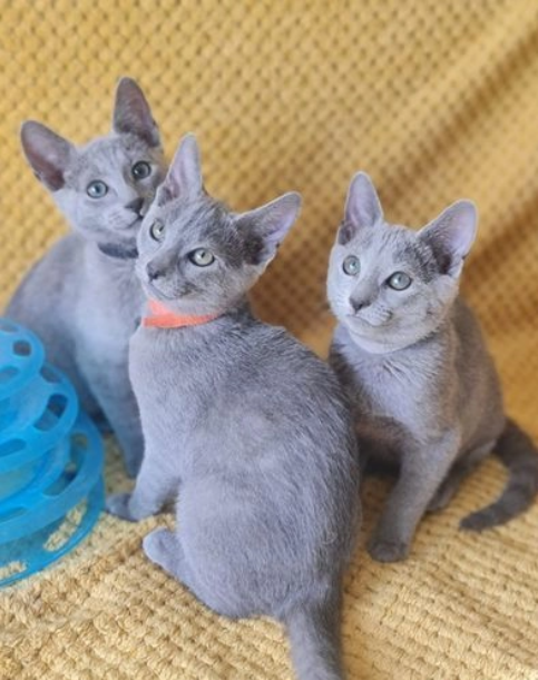 Magnifici gattini blu di Russia gatto registrato TICA con pedigree completo e lignaggio da campione. Ha una personalità affascinante e un'aria di orgoglio nel suo trotto. La mamma, Hilda, d'altra parte è più timida e riservata a meno che non si fidi e ti conosca. È tranquilla e preferisce comunicare con testate e lenti ammiccamenti per mostrare il suo affetto.