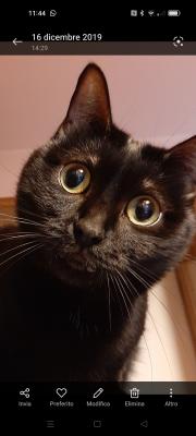 In adozione ,dopo controllo per e po st affido , gattina di casa nera coccolona e docile.... Abbituata a stare in casa....brava anche con i cani.