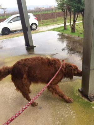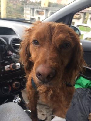Pippo oggi capiva tutto, sapeva che doveva andar via. Guardate i suoi occhi nell'auto. Pippo ha 5 anni e sembra un setter irlandese, ha un carattere affettuosissimo con le persone e ora temo che in un box da solo possa rattristarsi. Urge una super adozione. Non badate all'età, fate solo un'opera di carità per questo angelo che nessuno ha voluto aiutare. Per info chiamate Marilena al 3921584422