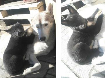 Eccomi, sto prendendo il sole con mamma, mi godo un po’ la vita. Ciao Tati, io sono Athena, cucciola di due mesi e mezzo. Mamma è una Husky ma babbo non lo conosco. Si dice in giro che sia un border collie. Chissà…. Mamma è una canina di proprietà di due signori cinesi e ha partorito me e le mie sorelle. Siamo in cinque.