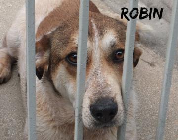 Robin è un cane socievole ma discreto: non ci salta addosso e non ci fa le feste, ci guarda speranzoso, ogni volta spera che siamo lì per lui, per portarlo via da lì. Si capisce che soffre tanto per la mancanza di affetto, lui era abituato ad avere una casa, una famiglia, a poter camminare nel verde .