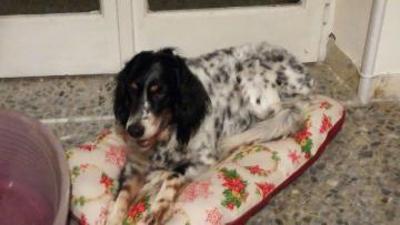 Baby è una setter di circa 7 anni. Purtroppo il suo proprietario non può più occuparsene e adesso si trova in stallo a Napoli. Cerca una nuova famiglia che possa adottarla e amarla. È una cagnetta dolcissima, molto tranquilla e affettuosa.