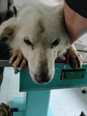 La sua adozione è molto urgente, Esaù è sfinito, triste, 16 anni di canile senza nessuna speranza hanno piegato il suo spirito.