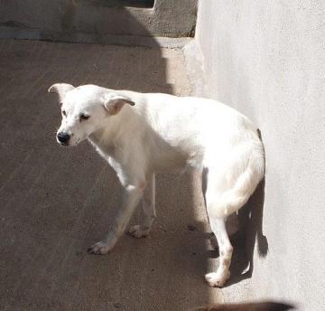 E' davvero magnifica, tutta bianca, elegante anche in questo canile, con il muso fine e gli occhi dolci liquidi da cerbiatta.