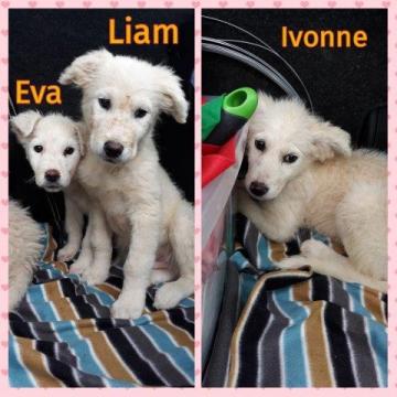L' Aquila...Eva Liam e Ivonne, tre angeli abbandonati in mezzo al nulla sotto la pioggia....fradici, magri, affamati, pieni di pulci, con qualche ferita da morso. Chissà cosa hanno passato povere creature