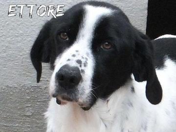 Ettore ha un muso molto bello e occhi in cui si legge una tristezza infinita, che tocca il cuore. Ormai è anziano, ha 10 anni, non puo’ finire la sua vita così, chiuso dentro questo box di cemento per sempre.