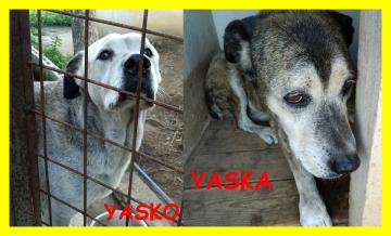 YASKO e YASKA. Hanno circa 13 anni, arrivati nel 2004 in canile del Lazio, lei giovane con i suoi sei cuccioli tutti felicemente adttati. Lui forte bello imponente pieno di forza e speranze, A loro la vita non ha dato nulla. Ancora dopo tutti questi anni aspettano l’amore.Yaska ora è una vecchietta dal cuore d’oro, con il suo carattere speciale, amorosa e affettuosa, Yasko ancora maestoso, il suo volto ha perso colore, e’ tutto bianco, ma reca ancora le tracce della bellezza che era da giovane. Da un po’ di tempo la loro salute vacilla e la loro allegria ha lasciato il posto alla tristezza, ma sono ancora in piedi!!! Cosa non daremmo per trovargli una casa, dar loro indietro tutto il tempo che hanno perduto, tutte le coccole e le attenzioni mai avute, tutto l’amore che avevano da dare e che non hanno mai potuto regalare. Sono entrambi sterilizzati, non sono incontinenti, vanno al guinzaglio e sono perfetti con i loro simili. Un'adozione di coppia sarebbe una gioia infinita, ma anche separati andrebbe bene lo stesso, qualunque cosa, pur di non fare passare loro un altro inverno in gabbia. Aiutateci a fare questo miracolo!!!