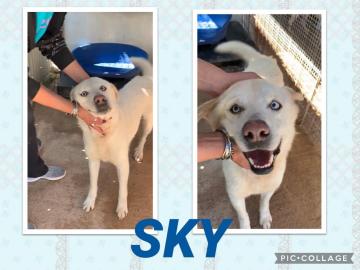 Sky molto probabilmente aveva un proprietario, perché indossa ancora un collare. Il suo pelo era candido e pulito al suo
