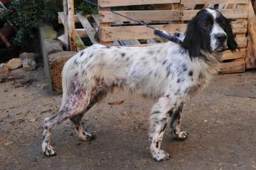 Viterbo URGENTISSIMO!!! Rex è un setter inglese di circa 4/5 anni, maschio intero, negativo a Leishmania e rogna. È stato trovato scheletrico mentre implorava qualcosa da mettere tra i dentini a un gruppo di persone che stavano raccogliendo le olive. Lo stato di abbandono, il deperimento organico per la fame e lo sporco gli ha causato una dermatite che stiamo curando. Al momento è stato messo in sicurezza in un terreno ma per i primi di gennaio deve andare via da lì. Si cerca URGENTEMENTE adozione o stallo. Se necessario sarà testato anche con i gatti. È dolcissimo e buonissimo. Per info Gabriella al 3738666462 o Caterina al 3474467409