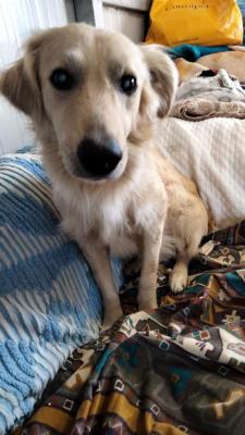 Ares è un bel cagnolino, un simil Golden biondo, dall'aspetto bello e tenero, con il musetto delicato.