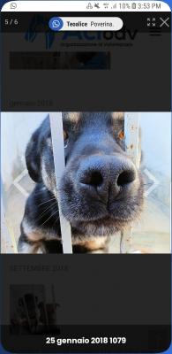 E' incredibile vedere la sua gioia quando, una volta ogni due mesi, la volontaria entra nel suo box... scodinzola tutto con la sua codina mozza e fa dei piccoli saltelli intorno a lei, come i cuccioli... poi si mette seduto al suo fianco, come fosse addestrato, le dà la zampa, l'abbraccia e si fa accarezzare tutta la testa e lisciare indietro le orecchie...