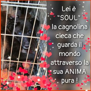 Cerchiamo una persona che faccia alzare la testa a Soul, per farle dimenticare la crudeltà terribile che le hanno inflitto, per farle sentire che gli esseri umani, quelli veri, non chiuderebbero mai una cagnolina sola e cieca in una gabbia di ferro.