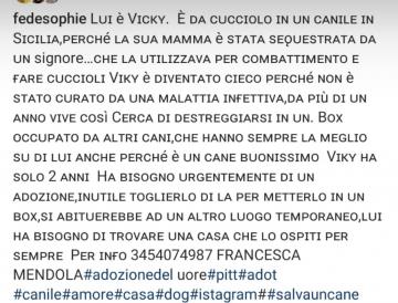 VIKI NON è STATO CURATO DA CUCCIOLO ED è DIVENTATO CIECO. POVERA CREATURA COME PUò VIVERE IN UN BOX CON ALTRI CANI..