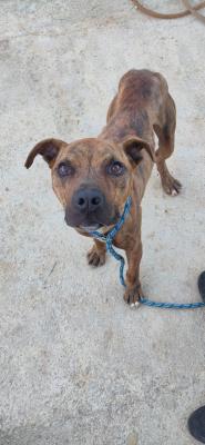 TIGRO si è ridotto così, stress da box ..gira tutto il giorno intorno... È in canile da un po e non ce la fa più..magro, si è incurvato su se stesso È stato trattato per una leggera leishmania ma per il resto è un pit bull affettuoso , coccolone e ricettivo Per info per un eventuale adozione i scriveteci per favore al 389 4295451